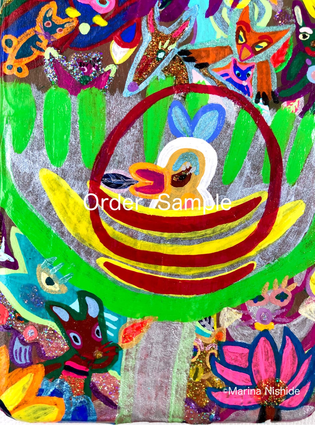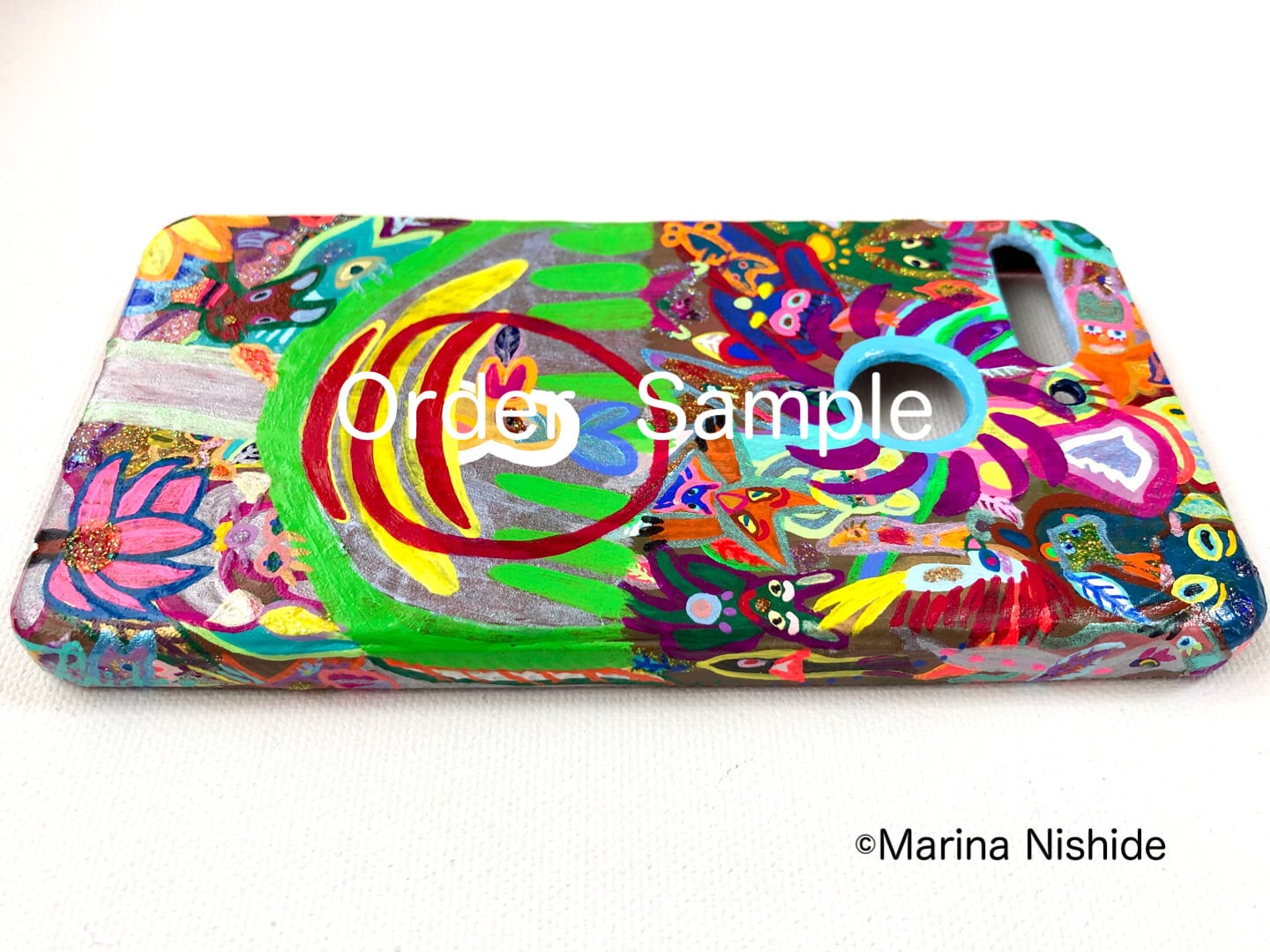 ※商品はアクリル絵具を用いた手描きの作品をUVレジンコーティングいたします。そのため、表面に多少の凹凸が生じますので、工場で成形された既製品のような商品とは異なります。ある程度、手描き/ハンドメイドならではの風合いをお好みの方向けです。