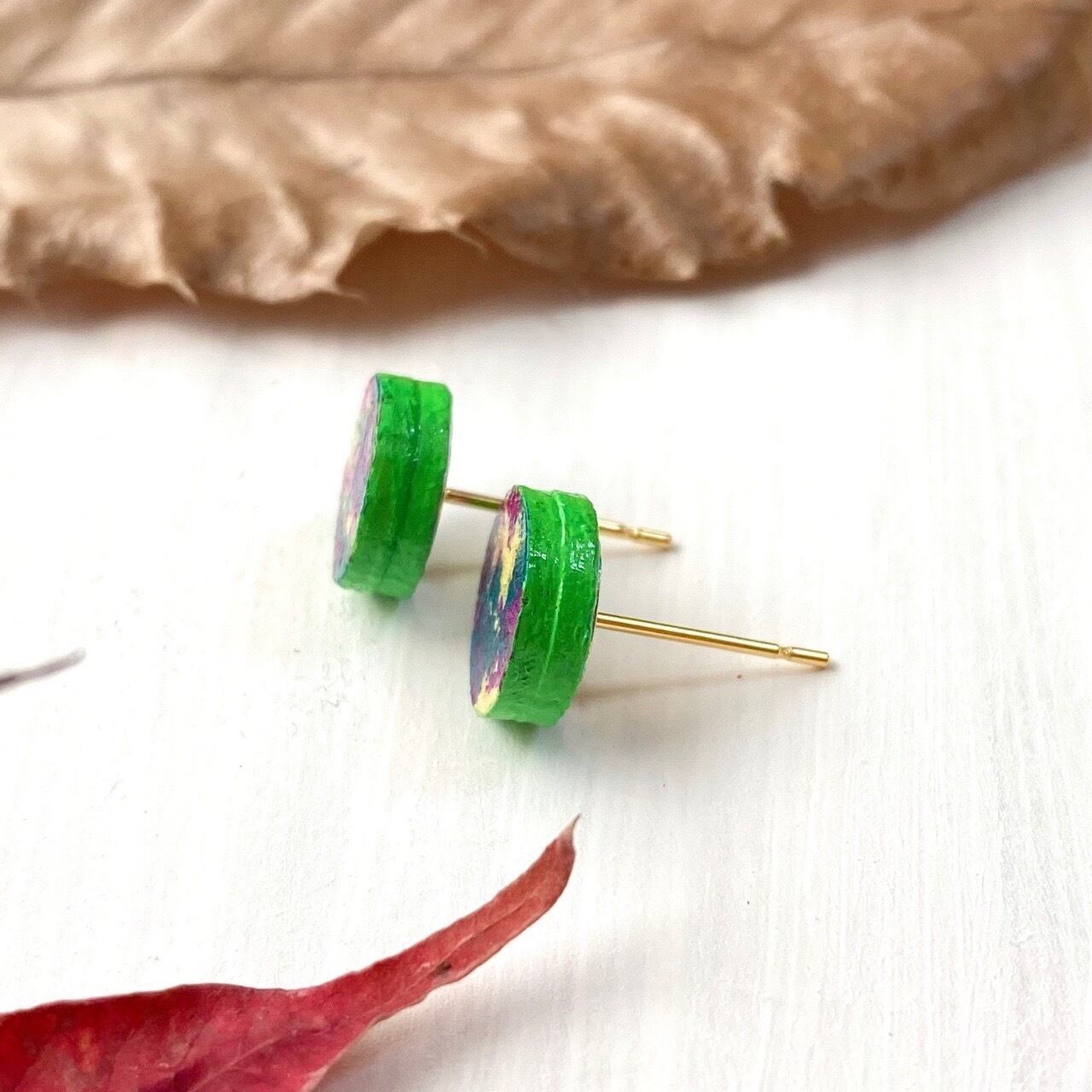 ウッド × ペイント ピアス 小さなピアス 遊び心 オフィスもOK ナチュラル ナチュラルカラー 自然 オシャレ マスクOK ハンドメイド