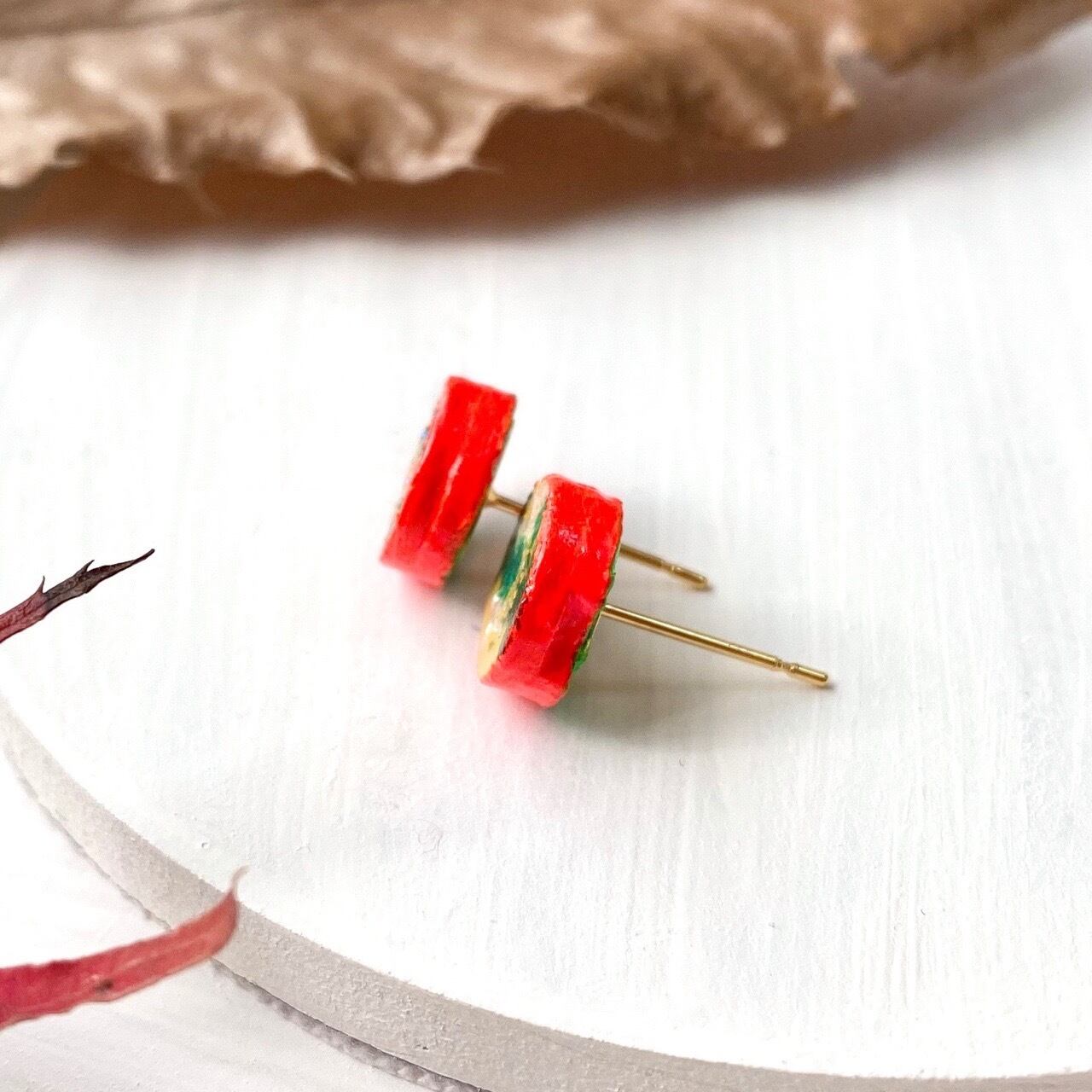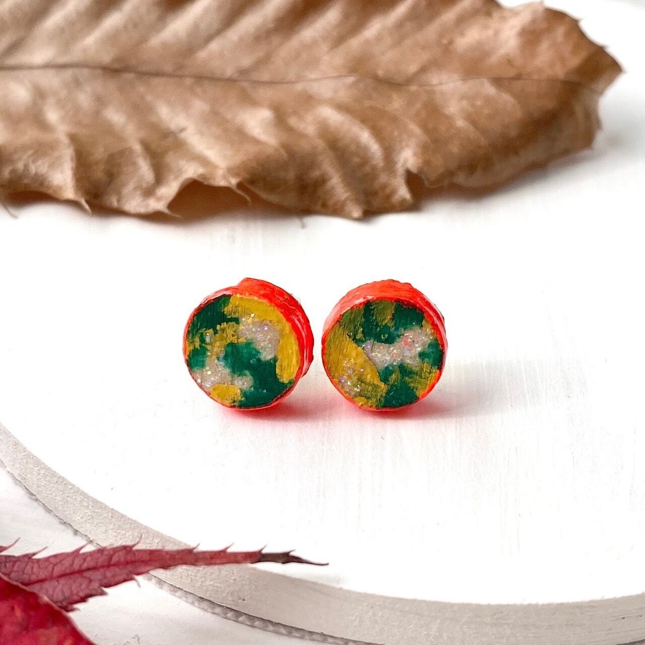 【アウトレット】 ウッド × ペイント ピアス 小さなピアス 遊び心 デザイン カラフル 蛍光 オシャレなピアス ときめき マスクOK ハンドメイド
