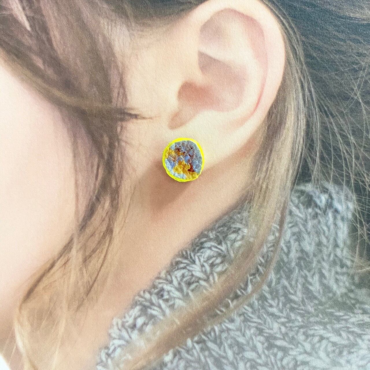 フェイクレザー 合皮 × ペイント ピアス 片耳ピアス シルバー ゴールド イエロー 遊び心 シンプル デザイン 一点もの 大人っぽい マスクOK ハンドメイド