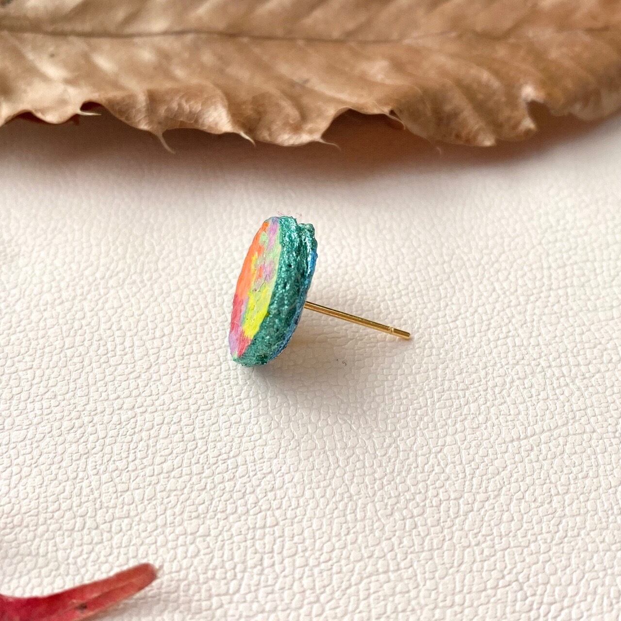 フェイクレザー 合皮 × ペイント ピアス 片耳ピアス エメラルドグリーン 優しい色 オシャレ 一点もの マスクOK ハンドメイド