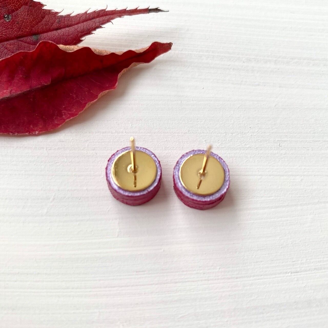 ウッド × ペイント ピアス アレルギー対応 ボルドー ワインレッド 冬らしいカラー 大人っぽい オフィスOK 小さなピアス ハンドメイド 一点もの