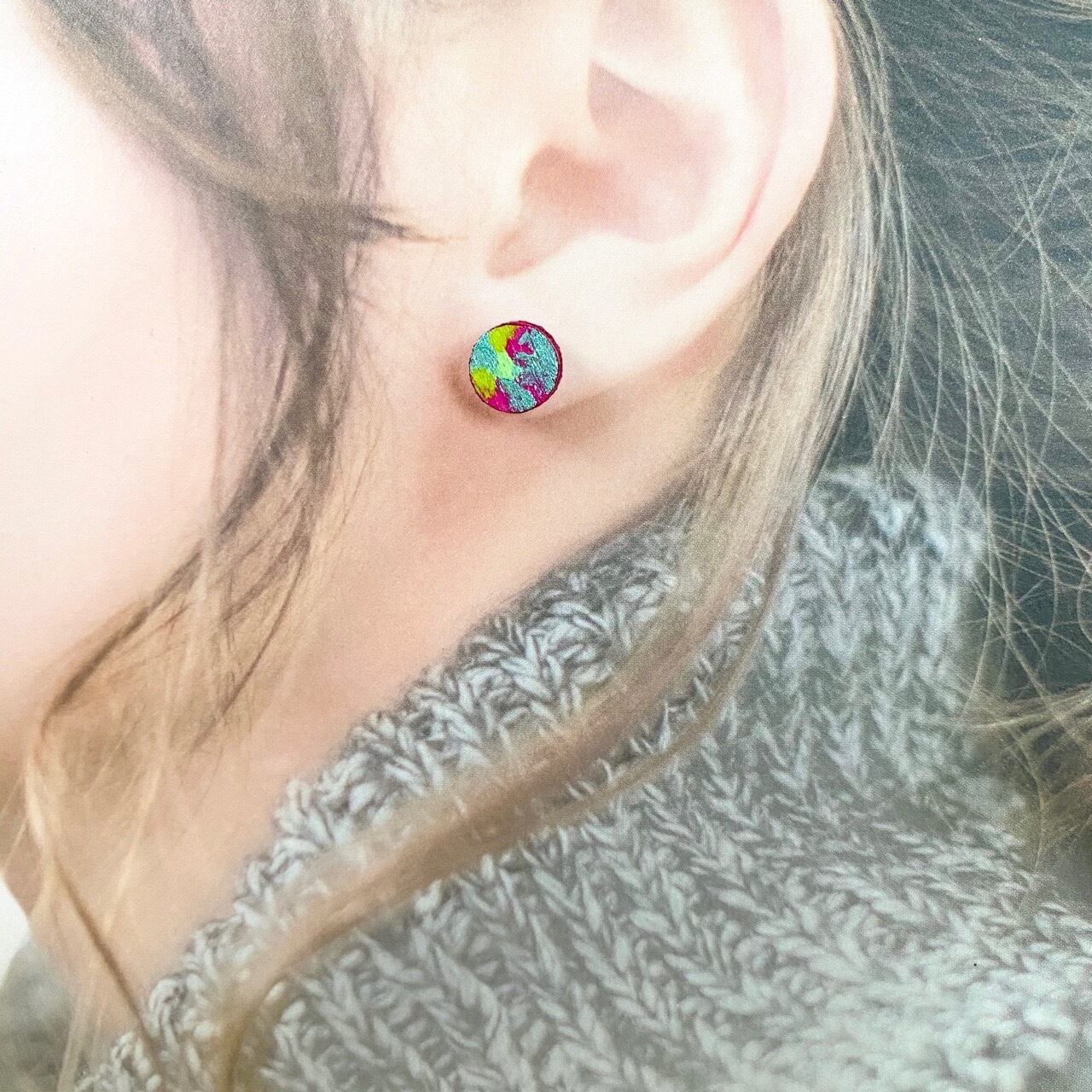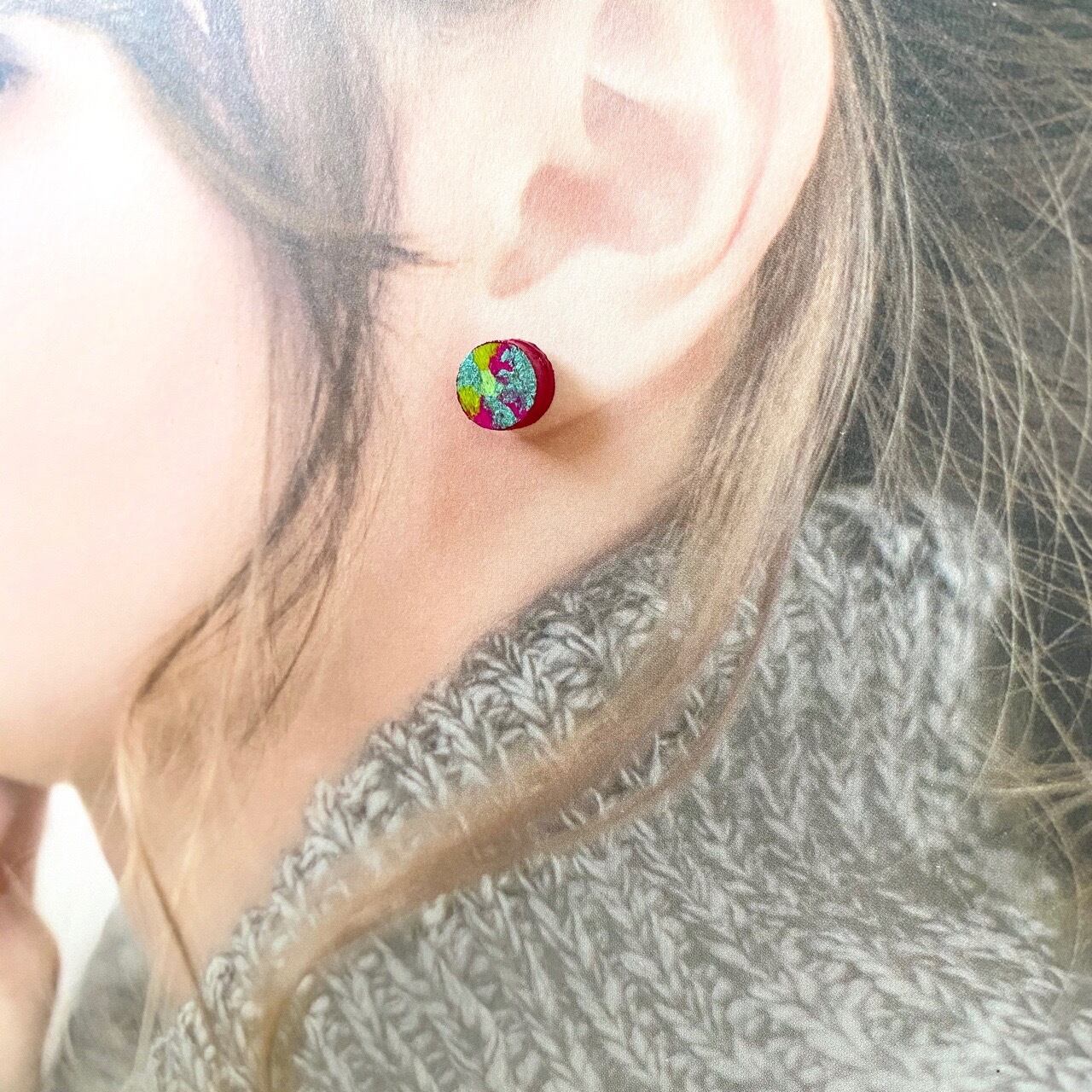 同じウッド素材、直径10mmで、厚さ:約3.8mmのピアスもございます。サイズとお値段をよくお確かめの上で、ご注文ください。