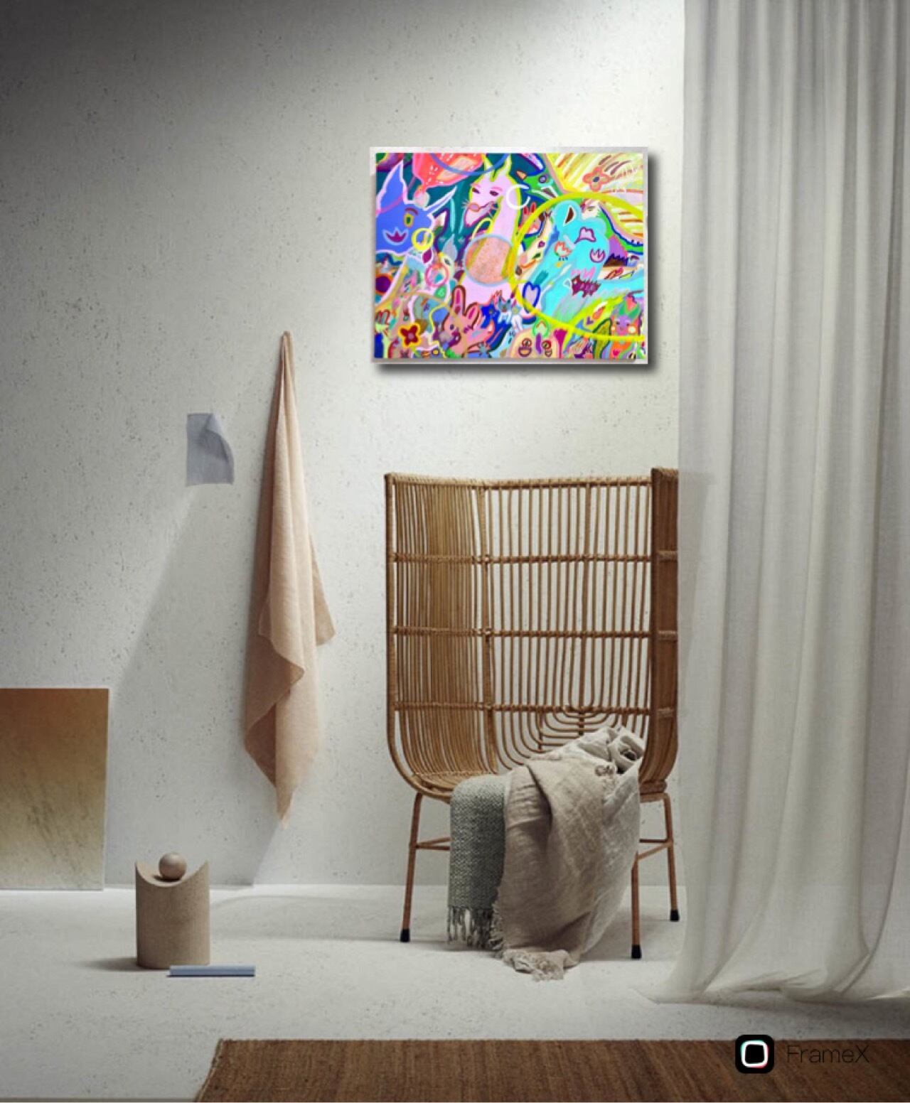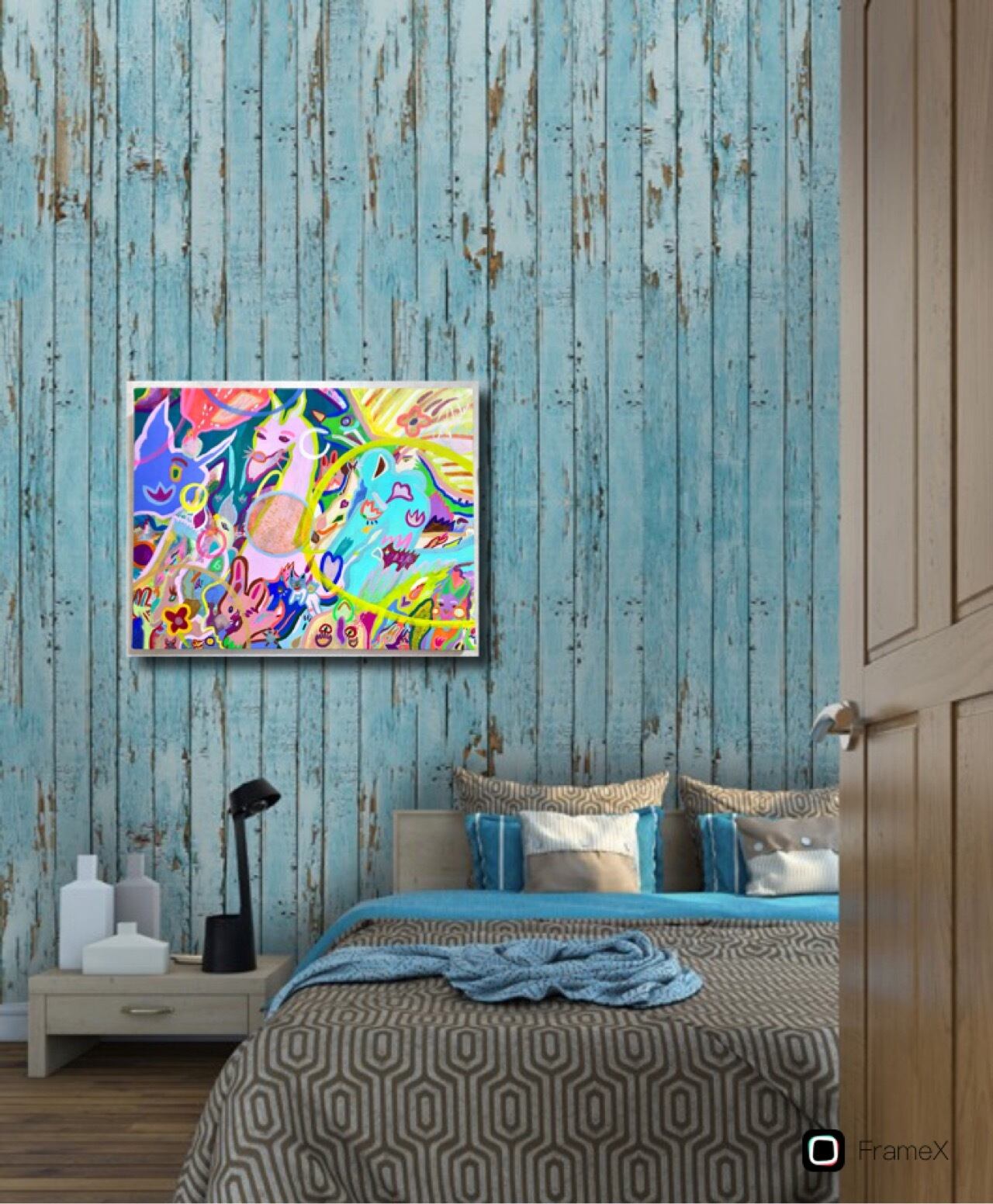 ・こちらの絵画は、額装を施さずキャンバスのまま飾っていただくタイプで、表面はコーティング保護されています。もしも、額装ご希望の場合は、別途額代+手数料にてお受けいたしますので、一度ご相談ください。